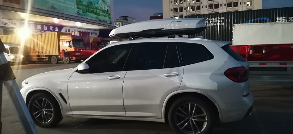 宝马X3 安装纽曼307车顶架 纽曼G5车顶箱 白色