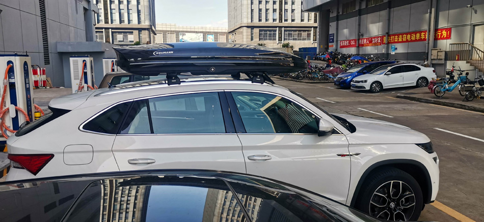 斯柯达科迪亚克搭载纽曼专用307车顶行李架,纽曼C5A车顶箱黑色