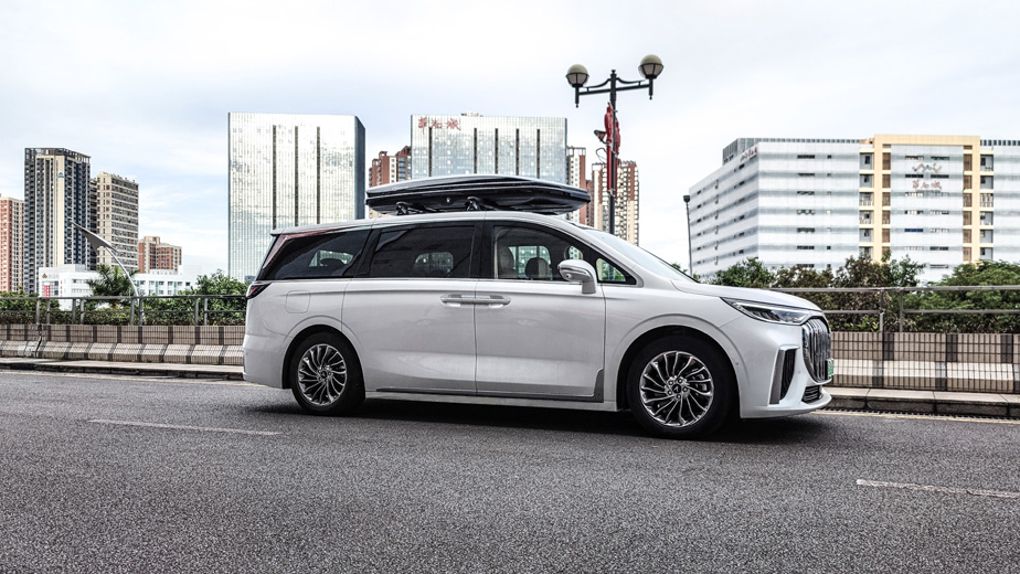 东风岚图梦想家搭载纽曼专用305s车顶行李架,纽曼K6车顶箱,商务车安装完高端大气又实用
