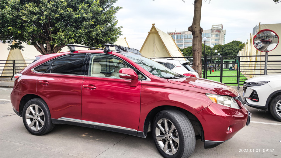 雷克萨斯rx350安装纽曼专用305s横杆+纽曼扰流板