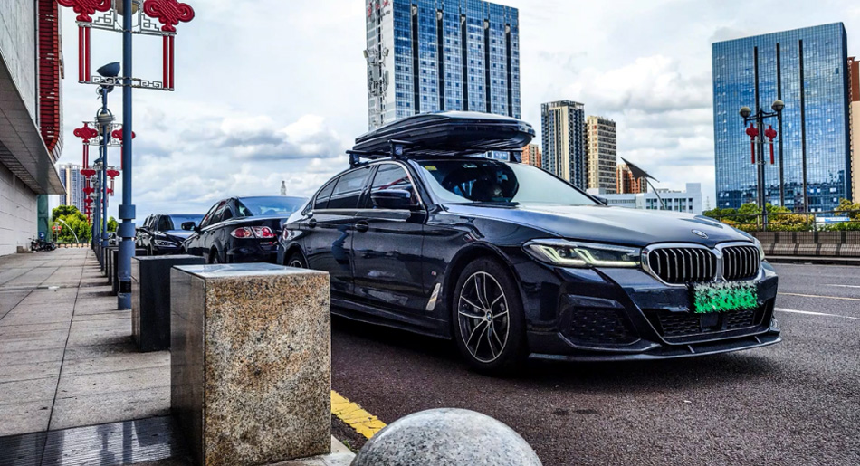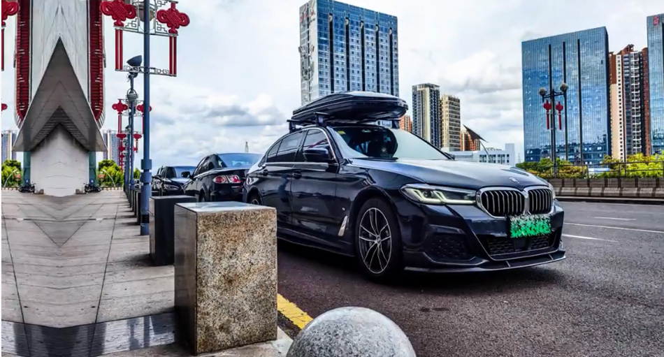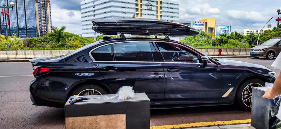 宝马5系安装纽曼305s专用车顶行李架+车顶箱K6不会遮挡视线