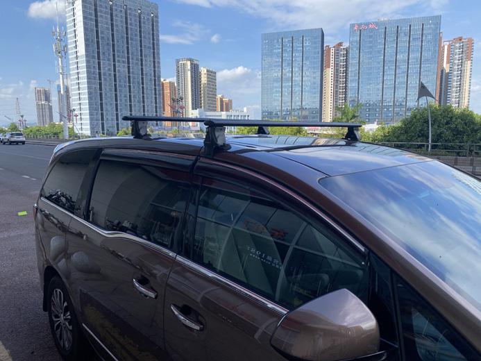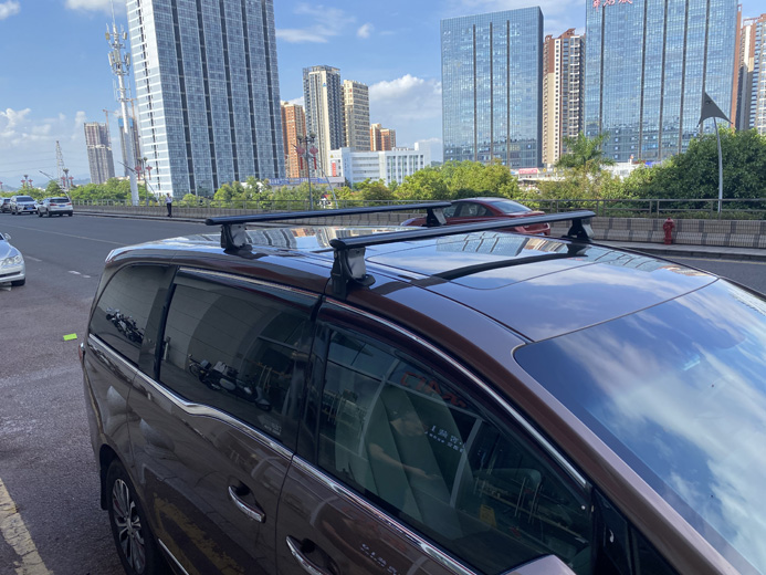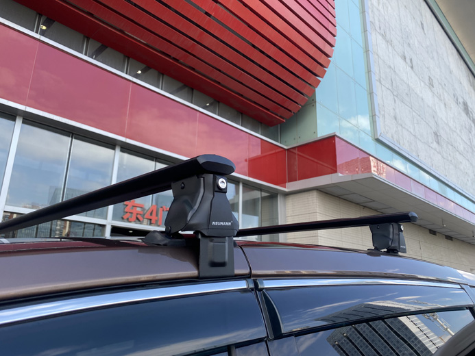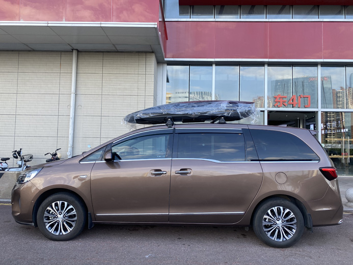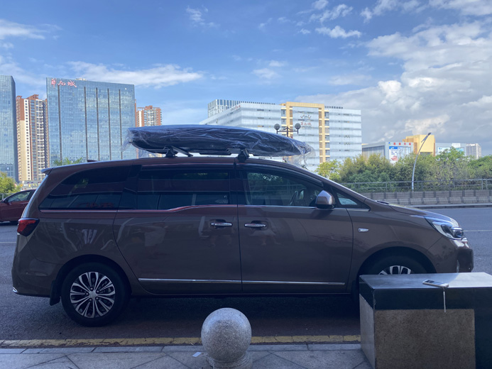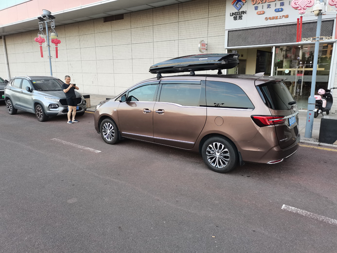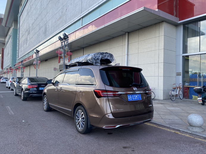 别克GL8胖头鱼到店安装纽曼专用305s车顶行李架+K6车顶箱加长款
