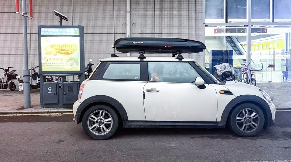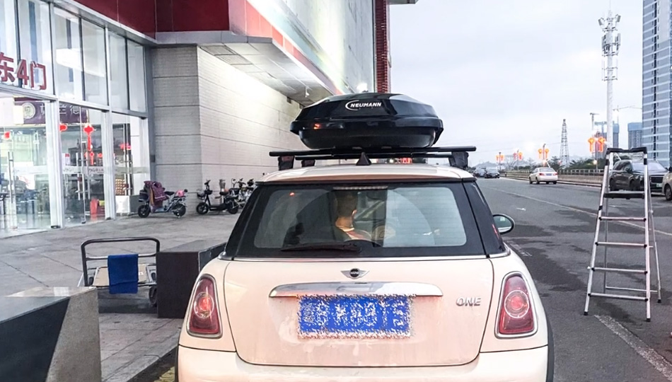 宝马mini安装纽曼专用305s车顶行李架+D5飞艇车顶箱,经典中蕴含优雅