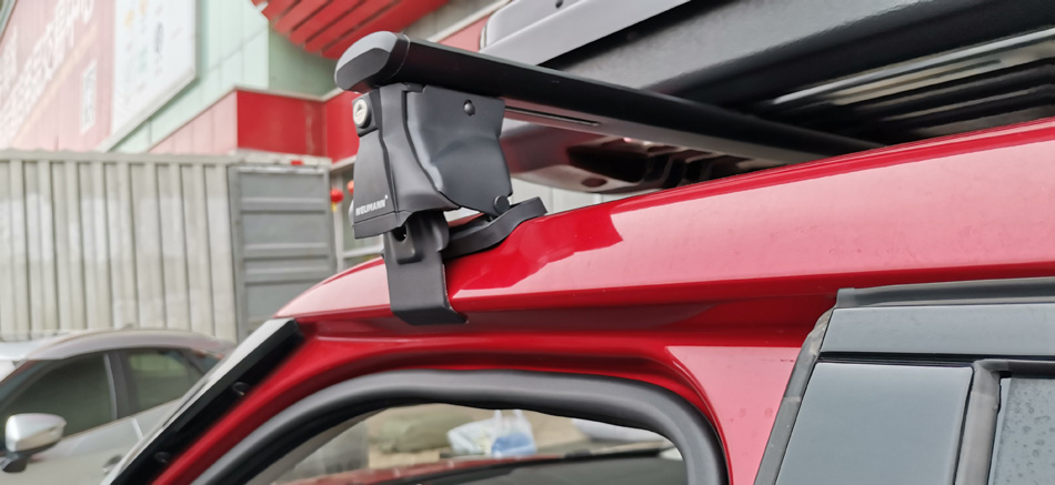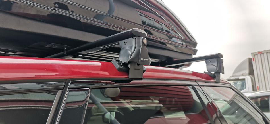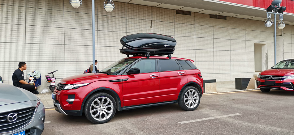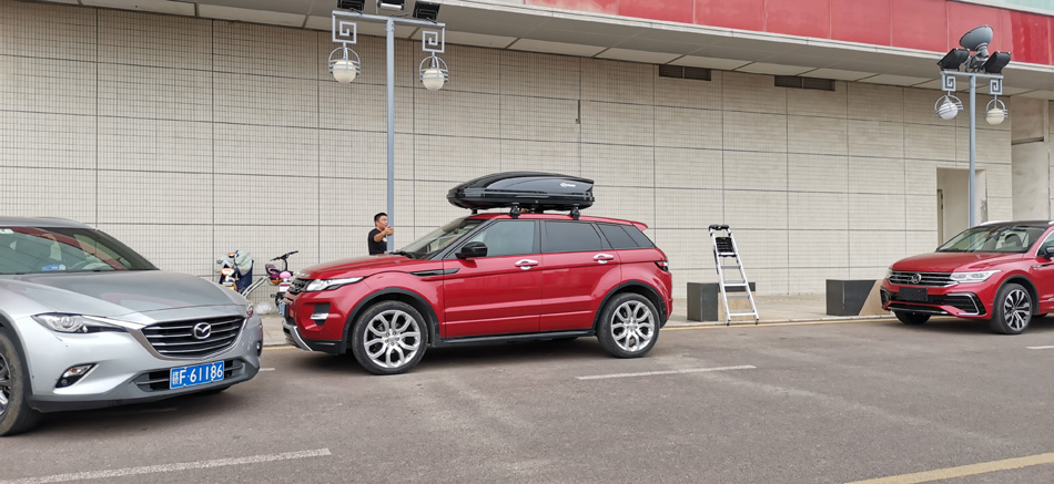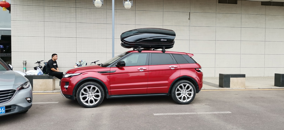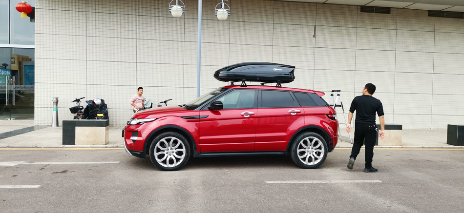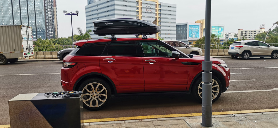 路虎极光到店安装纽曼专用305s车顶行李架+纽曼C5C车顶箱 大款实用