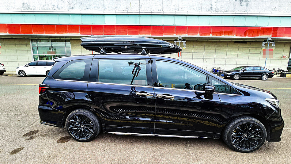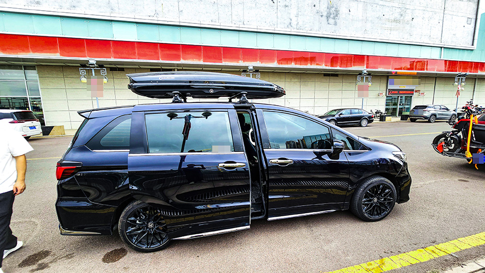 本田奥德赛搭载纽曼305s车顶行李架,K6车顶行李箱,旅行出游最佳选择