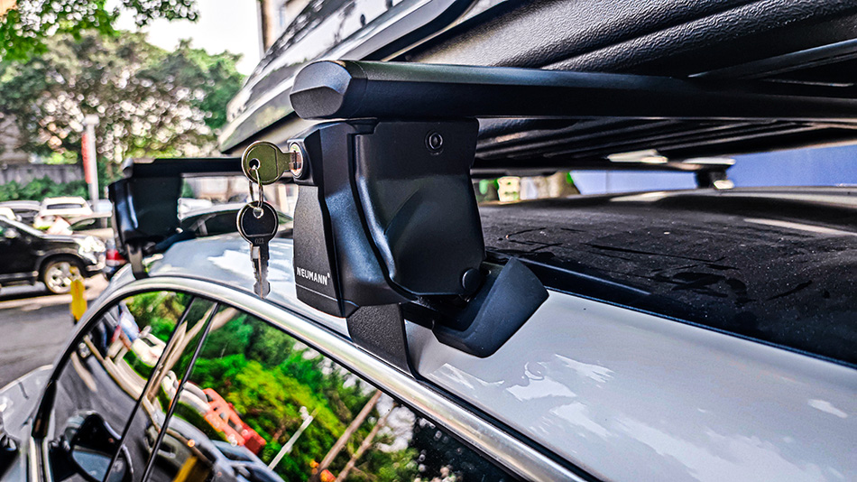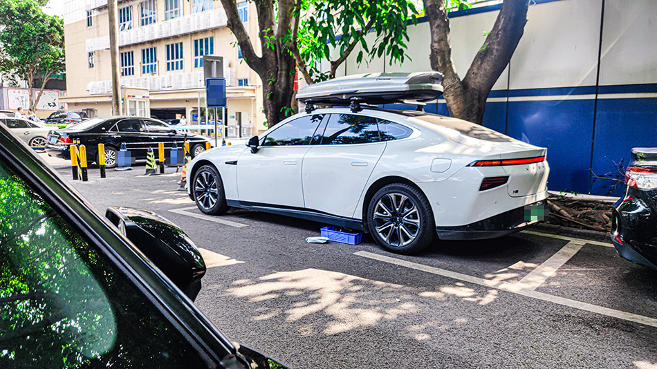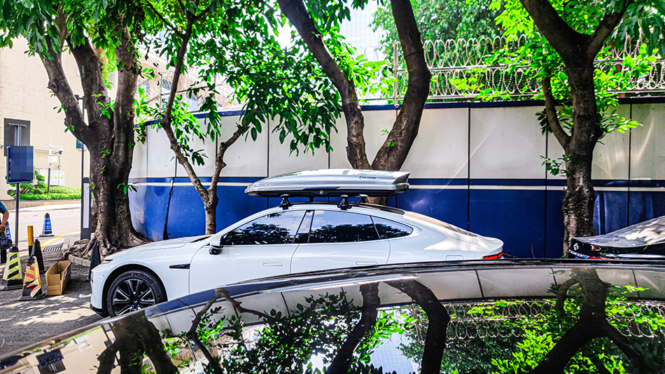 小鹏P7安装纽曼305s车顶行李架,G5车顶箱白色