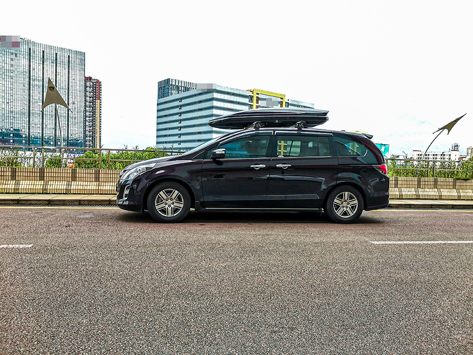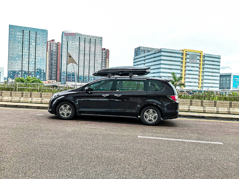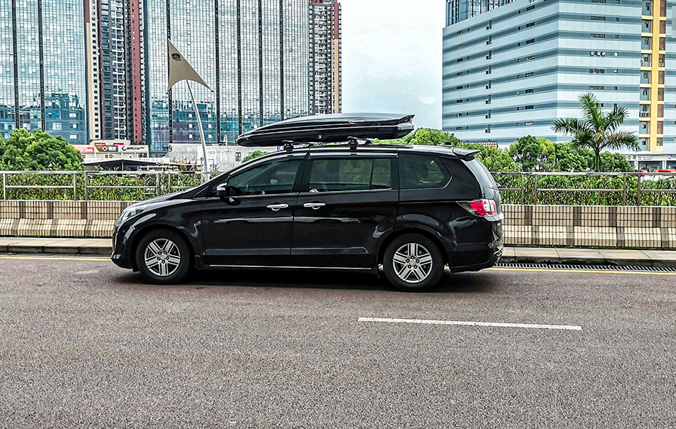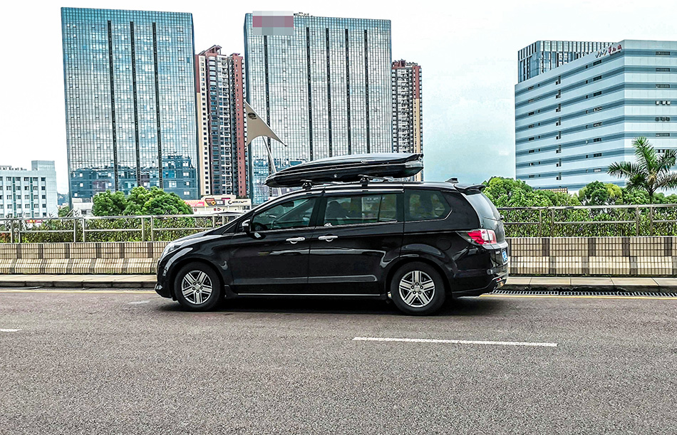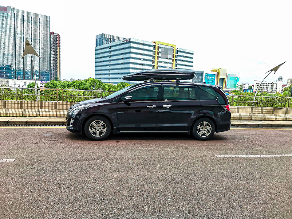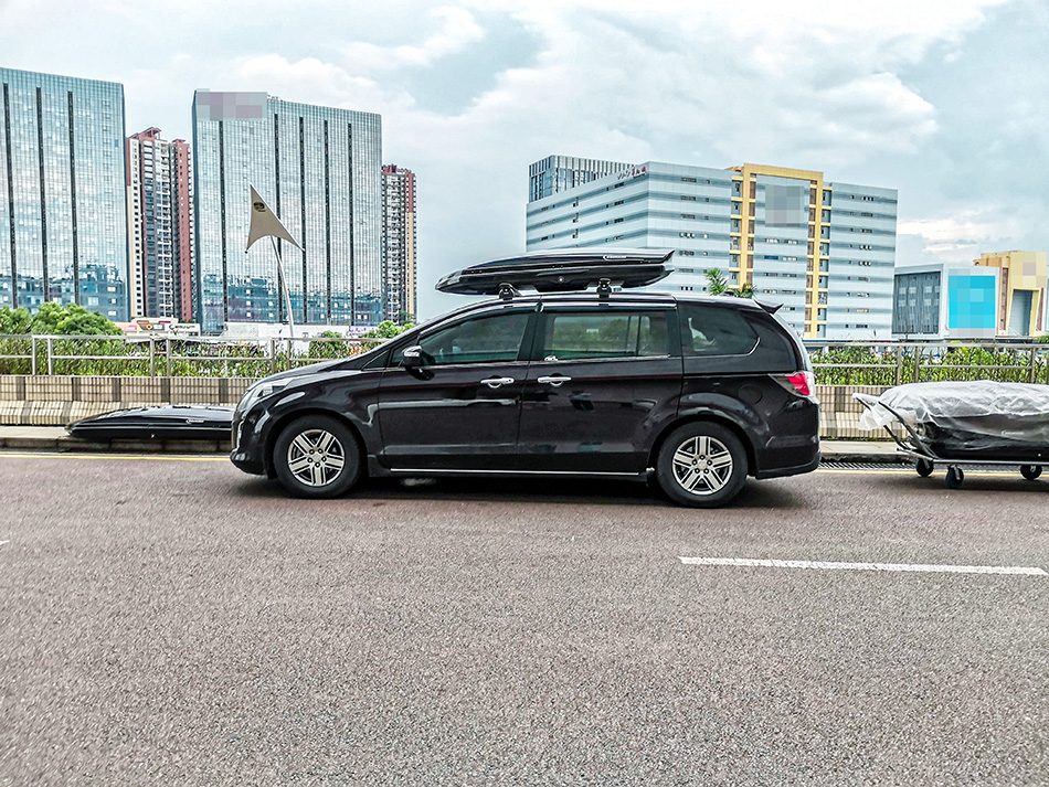 商务车马自达安装纽曼305s车顶行李架,纽曼K6车顶行李箱,质感超好。